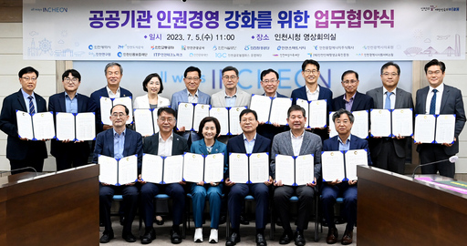 인천광역시는 5일 시청 영상회의실에서 시 소속 공사·공단, 출자·출연기관 16개 기관장들과 함께 시민의 인권보호 및 인권문화 확산 등 공공기관의 인권경영 강화를 위한 업무협약을 체결했다고 밝혔다.