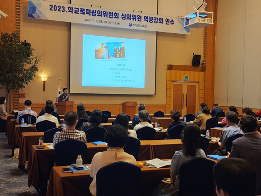 전라남도교육청(교육감 김대중)은 7월 13일(목) 호텔현대 바이라한 목포에서 '학교폭력대책 심의위원 역량 강화 연수'를 열어 학교폭력 관련 불복 사례를 줄이고, 피해자들의 빠른 회복을 지원하기 위한 지혜를 모았다.