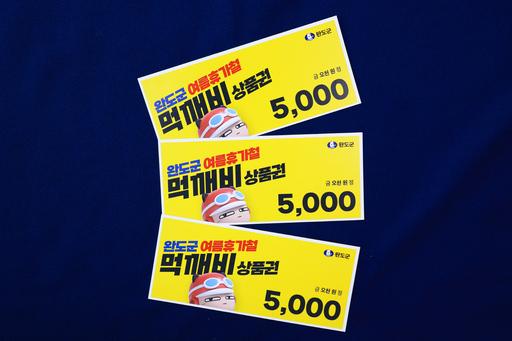 '먹깨비' 할인 쿠폰은 5천원 권 지류 상품권으로 7월 28일과 8월 4일, 8월 10일 오전 11시부터 12시까지 완도읍사무소 내 카페 공간에서 배부한다.