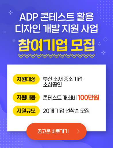 부산디자인진흥원(DCB)은 26일 부산 지역 기업의 상품 경쟁력 확보와 디자인 기업·디자이너의 역량 강화를 위한 '중소기업·소상공인 디자인 개발 지원' 수혜 기업을 아시아디자인플랫폼(ADP)을 통해 모집하고 있다고 밝혔다.