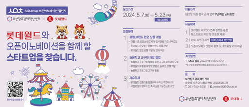 부산창조경제혁신센터(이하 부산창경)는 롯데월드와 함께 오픈 이노베이션을 함께 이끌 'B.Startup 오픈 이노베이션 챌린지 2024'의 참여 스타트업을 오는 23일까지 모집한다고 밝혔다.