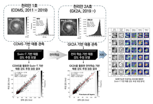 연구팀은 천리안 1호와 천리안 2A호 위성 자료를 이용해 전이 학습 기반의 태풍 강도를 추정했다. AI를 통해 태풍 강도 자동 추정 과정을 시각화하고 정량적으로 분석해 태풍 예보의 정확성을 높였다. 기존 기상 데이터를 학습한 AI가 새로운 태풍 데이터를 빠르고 정확하게 분석한 것이다.