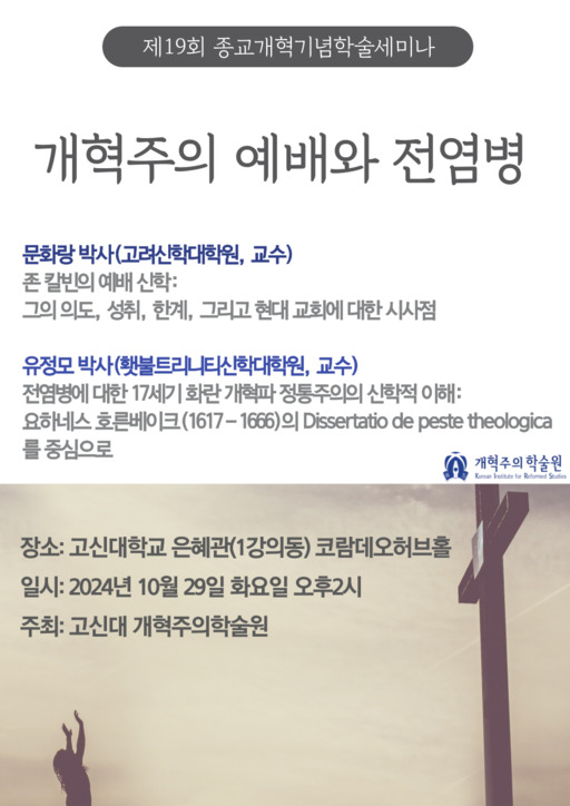 고신대학교 개혁주의학술원이 종교개혁주간을 맞아 오는 29일 오후 2시 고신대 1강의동 코람데오허브홀에서 '개혁주의 예배와 전염병'이라는 주제로 제19회 종교개혁기념학술세미나를 개최한다.