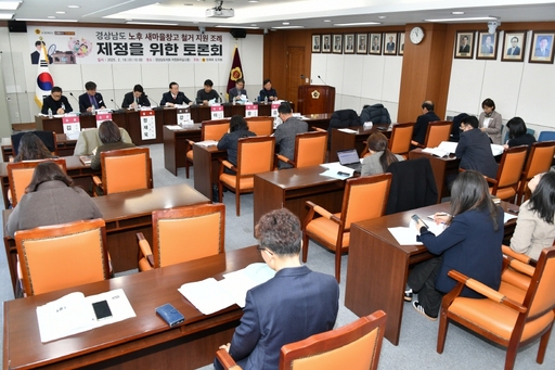 정재욱 도의원이 발제를 하고, 강용범 도의원이 좌장을 맡아 진행했다. 이어 김성덕 과장, 김주원 과장, 이문호 미래전략팀장, 유기현 교수, 김원근 총무가 참여해 '경상남도 노후 새마을 창고 철거 지원 조례 제정 방향'에 대한 다양한 의견들을 제시했다.