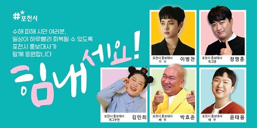포천시 관계자는 "홍보대사들의 응원 메시지가 시민들에게 위로와 힘이 되길 바란다"며 "더운 날씨에도 복구 현장에서 자원봉사로 애쓰는 분들께도 깊은 감사의 마음을전한다"고 밝혔다.