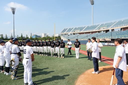 이 시장은 경기 시작 전 야구장을 둘러보며 원활한 대회 운영을 위해 힘쓰는 관계자들을 격려하고, 안전한 대회 진행을 당부했다.