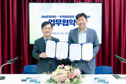 성남문화재단(대표이사 윤정국)은 주택관리공단 경기남부지사(지사장 모희택)와 문화소외계층 예술 향유권 확대 및 지속 가능한 문화·복지 협력체계 구축을 위한 업무협약을 체결했다.