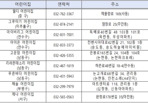 돌봄 이용 요금은 시간당 2,000원이며, 중구·미추홀구·연수구·남동구·부평구·서구 등 6개 구에 위치한 9개 어린이집이 지정 운영기관으로 참여한다. 구별로는 중구 1곳, 미추홀구 1곳, 연수구 2곳, 남동구 3곳, 부평구 1곳, 서구 1곳이다.