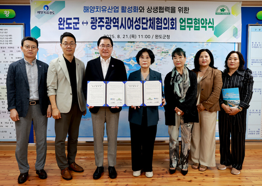 완도군(군수 신우철)이 광주여성단체협의회(회장 이영숙)와 완도해양치유산업 활성화 및 광주여성단체협의회와의 상생을 위한 업무 협약을 체결했다.