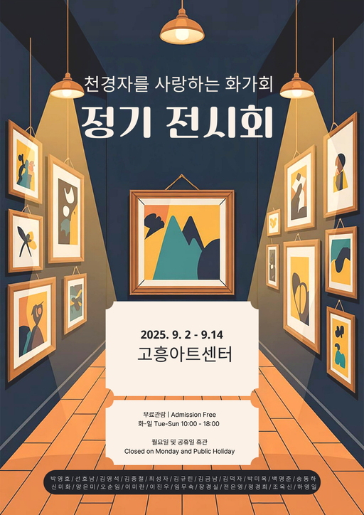이번 전시는 9월 2일부터 14일까지 고흥아트센터 전시실에서 열리며, 회원 22명이 참여해 유화, 수채화, 한국화, 아크릴, 혼합매체 등 다양한 작품을 선보인다.