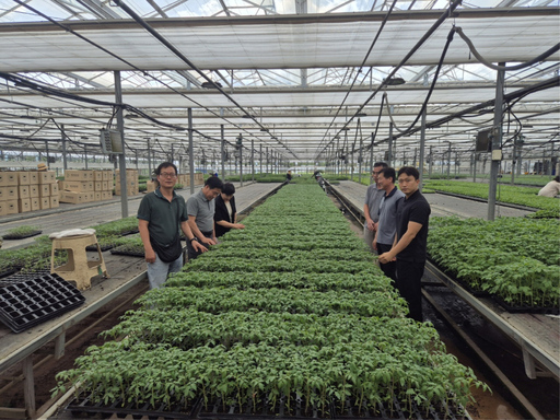 군은 스마트 유리온실로 구성된 중부육묘장의 생육실, LED 활착실, 접목실, 파종실, 발아실 등 주요 시설을 둘러봤다. 이어 양승광 대표로부터 동양계 및 서양계 토마토 유망 품종의 시장 동향과 함께, 육묘 및 정식 단계에서 필요한 온실 환경 관리, 양분 조절 기술 등에 대한 설명을 청취했다.