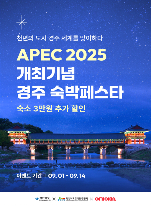 경북도는 정상회의를 앞두고 국내 관광객의 체류 만족도를 높이고 지역경제 활성화를 도모하기 위해 '2025 APEC 개최 기념 경주 숙박 페스타'를 개최한다고 밝혔다.