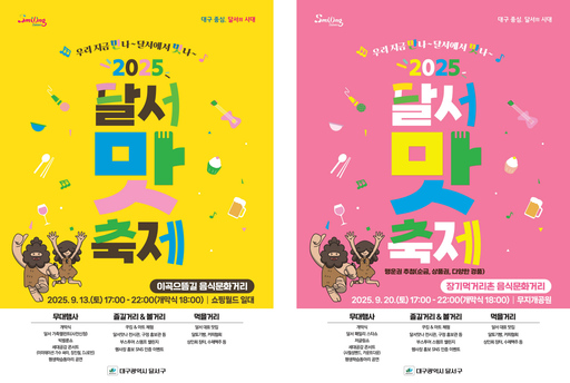 대구 달서구는 오는 9월 13일 이곡으뜸길 음식문화거리와 20일 장기 먹거리촌 음식문화거리에서 '2025 달서 맛 축제'를 개최한다.
