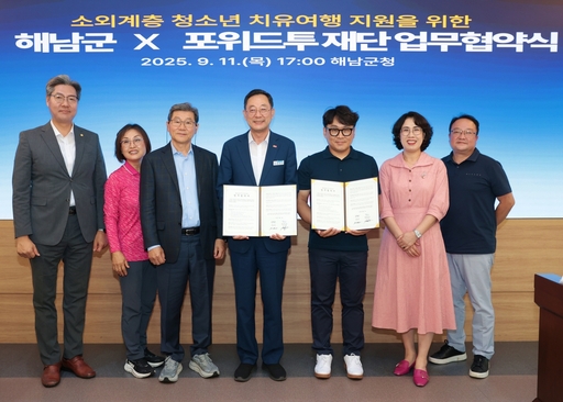 해남군과 포위드투 재단(ForWithTo Foundation)은 지난 11일 소외계층 청소년들의 문화향유권 증진을 위한 '포위드투 여행 프로젝트 업무협약'을 체결했다.