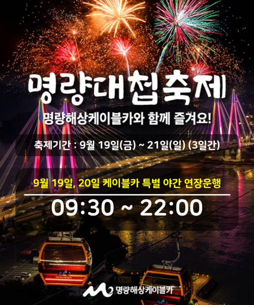 명량해상케이블카는 행사 일정에 맞추어 축제 기간 중인 19일(금), 20일(토) 양일간 운행시간을 오후 10시까지 연장운영을 진행하며, 낮 시간 케이블카를 방문한 고객들에게 행사장에서 햇빛을 가릴 수 있는 휴대용 썬캡을 무상으로 제공한다.