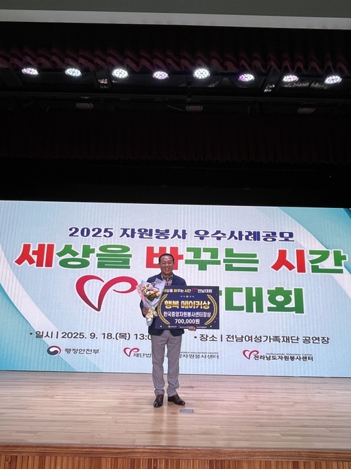 전남 무안군(군수 김산)은 지난 18일 전남여성가족재단에서 개최된 '2025 세상을 바꾸는 시간V 전남대회'에서 우수상인 한국중앙자원봉사센터장상을 수상했다.
