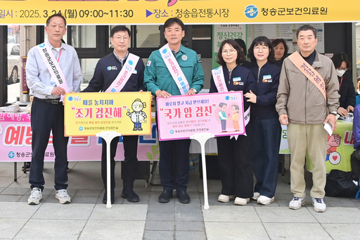 암 예방에도 선제적으로 대응하고 있다. '찾아가는 암 예방 교실'을 통해 국가암검진 참여율을 높이고 있으며, 올해 상반기 청송군의 암검진 수검률은 27.3%로 경북 도내 1위를 기록했다.