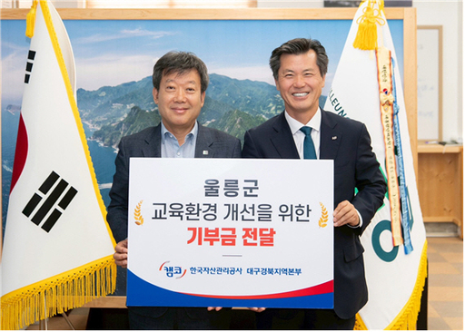 이날 열린 기탁식에는 한국자산관리공사 한창수 대구경북지역본부장과 (사)울릉군교육발전위원회 남한권 이사가 대표로 참석했다.