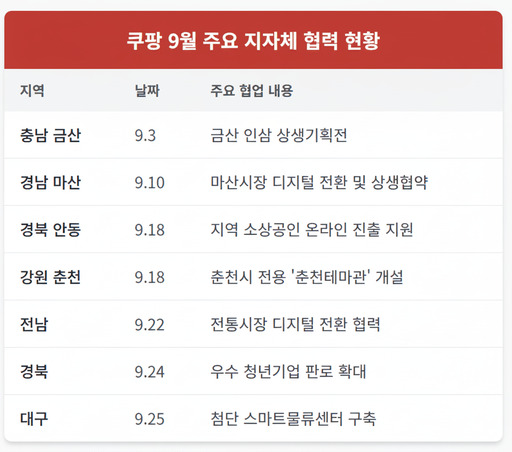 한 유통업계 관계자는 "최근 쿠팡이 펼치는 지자체 협력은 수도권에 집중된 물류망을 지방까지 촘촘하게 연결하는 장기 투자의 일환"이라며 "지역 경제 활성화에 기여하며 지역 깊숙이 물류망이 들어가는 목표"라고 설명했다.