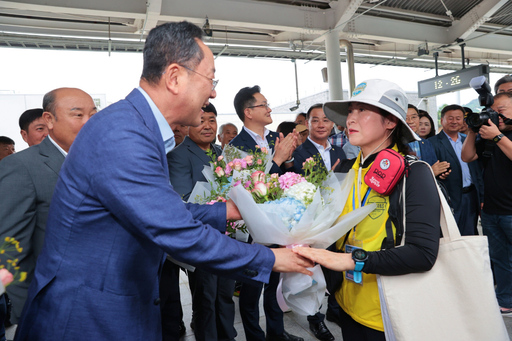 오전 8시 2분 목포역을 출발해 31분만에 해남에 도착한 새마을호의 첫 방문객에게 꽃다발 증정한데 이어 오전 7시 48분 부산을 출발해 낮 12시 25분 해남에 도착한 남도해양관광열차(S-train) 단체여행객을 대상으로 환영식이 진행됐다.