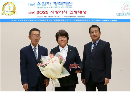 하남시의회 박선미 의원이 지난 28일 여의도 국회의원회관에서 열린 '2025 지방자치 의정대상' 시상식에서 기초의회 의원 부문 의정대상을 수상했다.