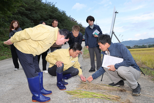 이번 현장 방문에는 김일만 의장을 비롯해 이재진 부의장과 지역구 김상백 의원 등이 함께했으며, 벼와 사과 농가 피해 상황을 직접 확인하고 향후 대책 마련 방안을 논의했다.