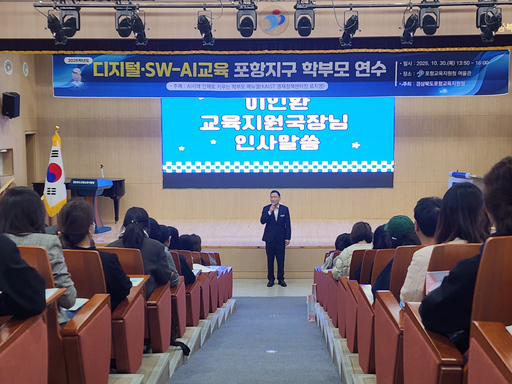포항교육지원청은 10월 30일 오후 2시부터 4시까지 여울관에서 '디지털·SW-AI교육 포항지구 학부모 연수'를 개최했다고 밝혔다. 이번 연수는 급변하는 인공지능 시대에 맞춰 학부모가 자녀의 미래 역량을 어떻게 지원하고 지도할 수 있을지 모색하기 위해 마련됐다.