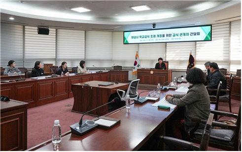 하남시의회 박선미 의원은 지난 17일 하남시의회 소회의실에서 '하남시 학교급식 조례 개정을 위한 급식 관계자 간담회'를 개최했다.