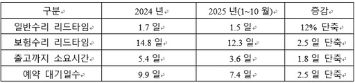 수리 완료 후 출고까지 걸리는 시간도 크게 개선되어, 보험 수리 기준 기존 5.4일에서 3.6일로 단축되면서 고객의 '차 없는 시간'이 최소화되었다. 예약 대기일도 눈에 띄게 줄어들었는데, 지난해 9.9일이던 예약 대기일수는 올해 7.4일로 단축됐다.