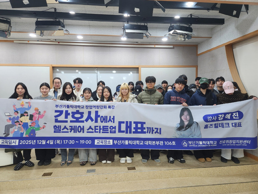 부산가톨릭대학교는 지난 4일 오후 5시 30분 대학본부관 106호에서 홈즈힐테크의 강예진 대표를 강연자로 초청한 특강을 개최했다.