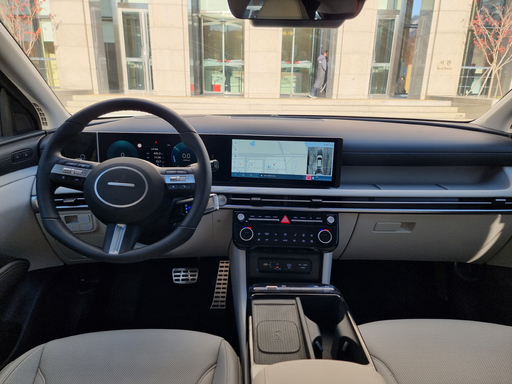 실내는 12.3인치 클러스터와 12.3인치 센터 모니터가 이어지는 파노라믹 커브드 디스플레이가 중심을 잡는다. 운전자 쪽으로 살짝 기울어진 디자인은 시인성을 높였고 무선 소프트웨어 업데이트와 블루링크 스트리밍 등 최신 기능을 활용할 수 있다. 지도·드라이브 모드·오토홀드 등 자주 쓰는 기능은 물리 버튼으로 남겨 조작 편의성도 확보했다. 컬럼 타입 변속기와 플로팅 센터 콘솔은 실내 공간의 활용도를 높였고시트는 탄탄한 가죽 소재로 내구성을 확보했다.