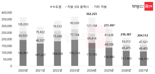 2026년 전국 아파트 입주물량은 21만387가구로 2025년 27만8088 가구 대비 약 25% 줄어든다.