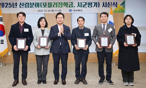 경북도는 22일 도청 사림실에서 '2025년 산림분야 종합평가' 우수 시군에 표창패와 포상금을 수여하고, 한 해 동안 산림시책 행정 추진에 힘쓴 시군 관계자들을 격려했다고 밝혔다.