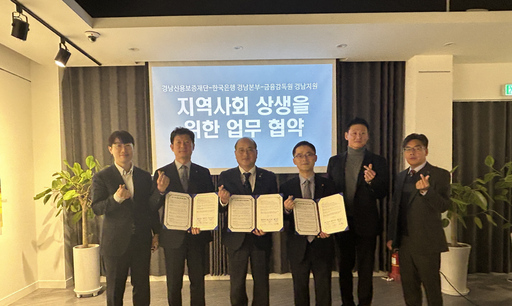경남신용보증재단(이하 경남신보)은 23일 한국은행 경남본부, 금융감독원 경남지원과 함께 지역 사회 상생을 위한 합동 성과 공유회를 열고 업무 협약을 체결했다.