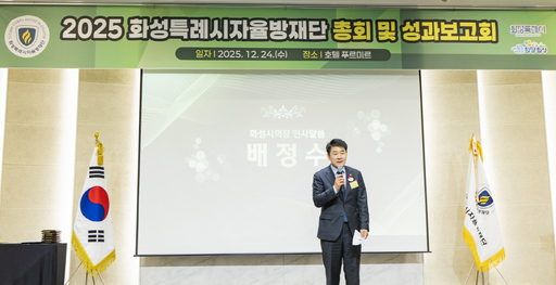 화성특례시의회(의장 배정수)는 24일 호텔 푸르미르 그랜드볼룸에서 열린 '2025년 화성시 지역자율방재단 직무교육 및 활동보고회'에 참석했다. 한 해 동안 지역 안전을 위해 헌신한 단원들을 격려하고 우수단원 표창을 수여하는 자리였다.