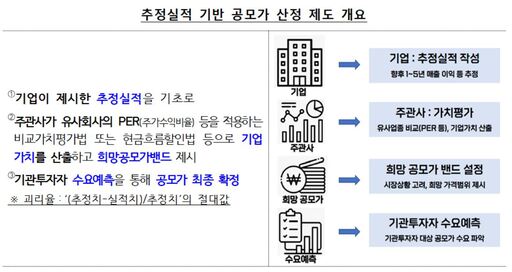추정실적 기반 공모가 산정은 기업이 미래 실적을 제시하고, 주관사가 이를 토대로 비교가치평가법(PER)이나 현금흐름할인법(DCF)을 적용해 희망 공모가 밴드를 산출한 뒤 기관 수요예측으로 최종 공모가를 확정하는 구조다. 문제는 이 과정에서 제시된 단기 실적 전망이 실제보다 과도하게 설정되는 경우가 많다는 점이다.