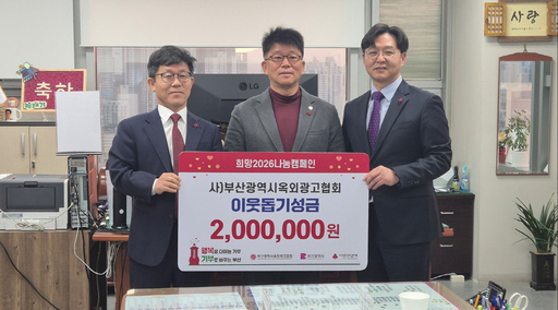 부산옥외광고협회는 지난해 12월 29일 부산사회복지공동모금회에 이웃돕기 성금 200만원을 전달했다고 밝혔다.