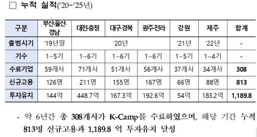 2025년 한 해 동안의 성과도 뚜렷하다. K-Camp 참여 기업들은 지난해에만 164억7000만원의 투자유치와 80명의 신규 고용을 창출했다. 이와 함께 매출 증가 141억5000만원, 사업제휴 85건(R&D 협력, 자본조달 업무협약, 타 창업지원 사업 선정 등) 성과를 거뒀다.