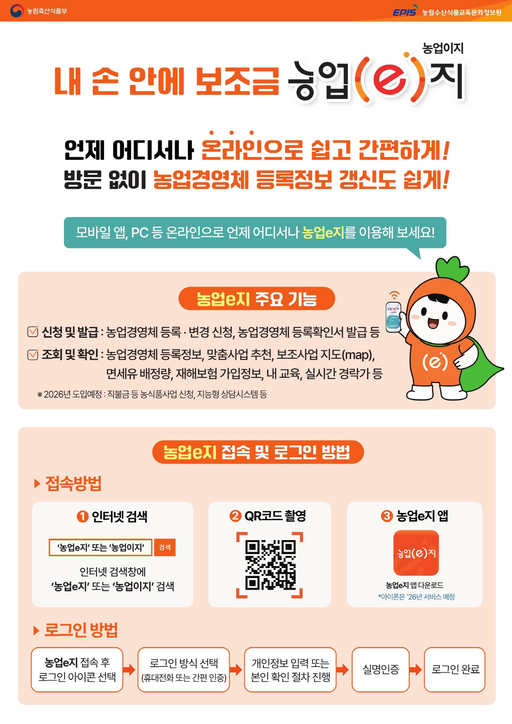 김승한 소장은 "정확한 경영체 정보는 정부지원 사업 참여 시 불이익을 예방하는 가장 확실한 방법"이라며 "장소에 구애받지 않고 편리하게 이용할 수 있는 '농업이지시스템'을 적극 활용해줄 것"을 당부했다.