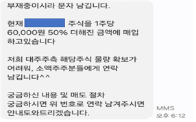 물량이 충분히 모이면 사기 조직은 제3자나 대주주로 위장해 접근한다. "이 주식을 6만원에 대량 매입하겠다"며 더 많은 주식 매수를 유도한 뒤, 투자자가 추가로 돈을 보내는 순간 그대로 잠적한다. 이후 종목만 바꿔 같은 수법을 반복하는 방식이다.