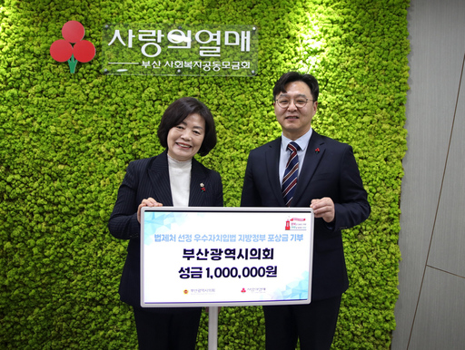 부산시의회는 13일 오전 부산사회복지공동모금회(이하 부산사랑의열매)에 100만원을 기부했다.