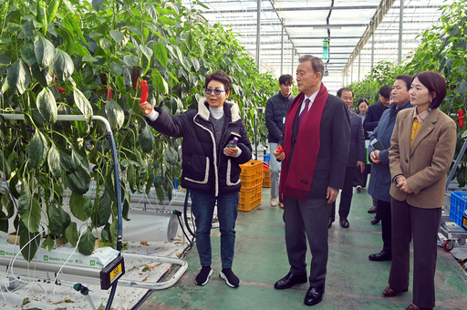 전북 김제 소재 파프리카 수출업체 농업회사법인 ㈜농산을 방문한 자리에서는 동절기 파프리카 작황을 점검하고 수출 애로사항을 청취했다.