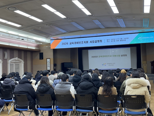 인천광역시 서구(구청장 강범석)는 2026년도 교육경비 보조지원 사업의 원활한 추진을 위해 관내 초·중·고·특수학교 교육경비사업 담당 실무자 84명이 참석한 가운데 '2026년 교육경비보조지원 사업설명회'를 개최했다.