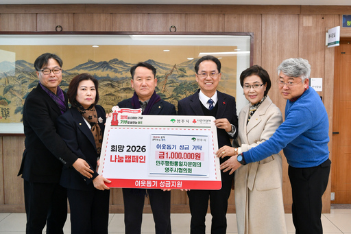 같은 날 민주평화통일자문회의 영주시협의회(회장 윤옥식)도 '희망2026 나눔캠페인'의 일환으로 성금 100만 원을 시청에 전달했다. 윤 회장은 "자문위원들이 뜻을 모은 작은 정성이 이웃에게 도움이 되길 바란다"고 말했다.