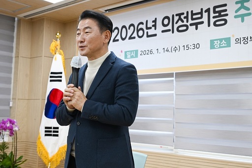 의정부시 의정부1동주민센터(동장 김순주)는 1월 14일 주민센터에서 시장, 도.시의원, 지역 단체장, 주민 등이 참석한 가운데 '2026년 의정부1동 주요업무보고회'를 열고 동 현안과 올해 핵심사업 추진 방향을 공유했다.