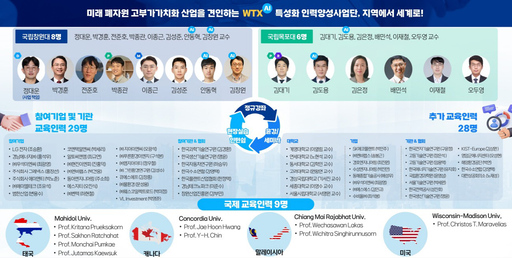 국립창원대 환경에너지공학과는 경남-전남 국립대 연합 WTXAI (Waste-to-X with AI) 인재 양성 모델을 토대로 AI 융합을 통한 폐자원의 고부가가치 전환 전문 인력 배출에 나선다.