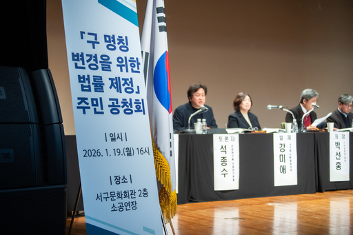 인천 서구(구청장 강범석)는 지난 19일 서구문화회관 소공연장에서 지역주민 약 200여 명이 참석한 가운데 '구 명칭 변경을 위한 법률 제정 주민 공청회'를 열고 주민 의견을 수렴했다고 밝혔다.