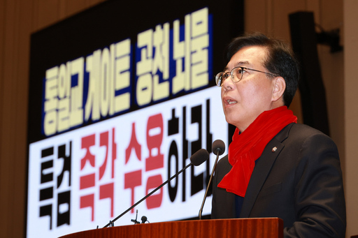 송 원내대표는 "노란봉투법, 더 센 상법으로 대변되는 기업을 발목잡는 법안을 일방적으로 처리하고 걱정하는 국민과 야당 목소리에 전혀 관심도 없는 양반이 갑자기 신년회견에서 성장을 말하는 것은 너무 앞뒤가 안 맞는다"며 "그리고 기자 질의응답 도중엔 정부가 시장을 이길 수도 없지만 시장이 정부를 이길 수도 없다는 발언을 듣고 제가 제 귀를 의심했다"고 전했다.