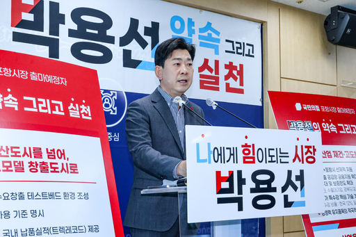 박용선 경북도의원이 21일 포항시청 브리핑룸에서 다가올 지방선거를 앞두고 포항시장 출마 예정자로서 1호 공약을 발표하며 본격적인 정책 알리기에 나섰다.