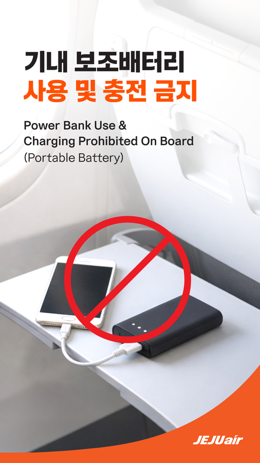 제주항공 관계자는 "국내외에서 보조배터리로 인한 화재가 잇따라 발생함에 따라 기내 화재 위험을 줄이기 위한 조치로 보조배터리의 기내 사용을 금지하게 됐다"고 말했다.